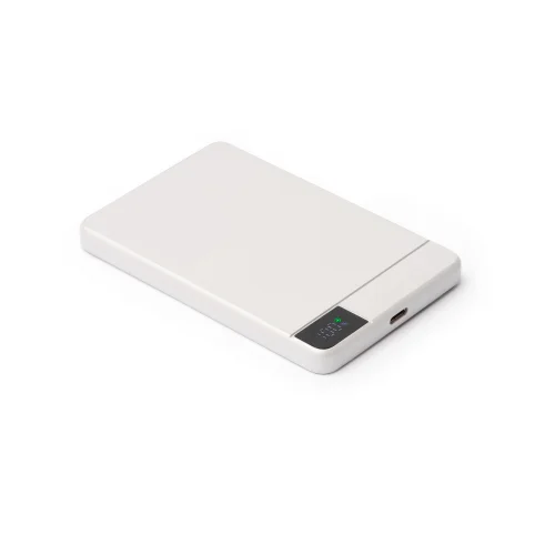 Descripción:Batería externa magnética de 5.000 mAh con cuerpo elaborado en aluminio reciclado. Cuenta con una salida de carga de hasta 20W en carga con cable y 15W de carga rápida en salida inalámbrica para los dispositivos provistos de esta tecnología, lo que permite cargar dispositivos de forma rápida. Incluye pantalla con indicador de porcentaje de carga, puerto Tipo C para entrada y salida, además de anillo magnético.