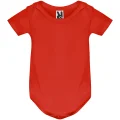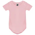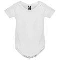 Características:Body de bebé manga corta, punto liso. Cuello redondo y bajo ribeteado en punto 1x1. Cierres con botones a presión en la entrepierna. Hombro apertura cruzada. Tratamiento Roly, 96% algodón peinado, 4% elastano. 175 g/m2.