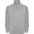 Características:* Sudadera con media cremallera a tono y cuello alto. * Vista interior del cuello en el mismo tono. * Cubrecosturas reforzado en el interior del cuello. * Punto canalé 1x1 en puños y cintura. * 50% poliéster/ 50% algodón, felpa perchada, 280 g/m². * Color gris vigoré 58: 55% algodón / 40% poliéster / 5% viscosa. * Felpa perchada. * Tratamiento antipilling.