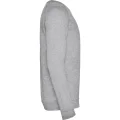 Características:* Sudadera de algodón m/larga estilo ranglán. * Con ribete, puños, cintura y cuello en canalé 1x1. * Cuello redondo con detalle de costuras cruzadas con remallado como adorno central y cubrecosturas de refuerzo en el interior del cuello. * 100% algodón, felpa no perchada. 260 g/m2. * Gris vigoré: 85% algodón/15% viscosa.
