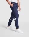 Descripción:Pantalón RODAS largo de deporte con cinturilla elástica y cordón ajustable. Bolsillos laterales con cremallera. Bandas a contraste Blanco. Bajos con puño rib 1x1. Combinable con chaqueta LEROS.